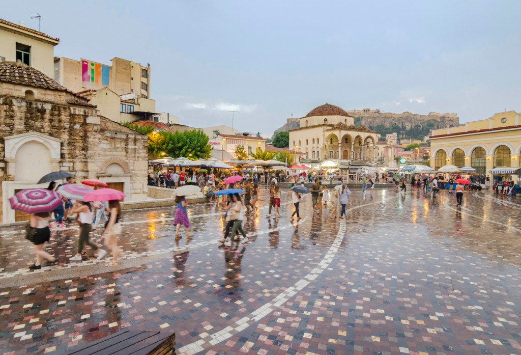 è una delle zone più interessanti e frequentate ad Atene, con i suoi mercati e negozi locali per lo shopping vintage od oggetti di antiquariato; fra le sue stradine caratteristiche ci sono anche numerosi ristoranti tipici all’aperto.