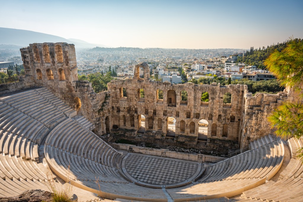 è un teatro suggestivo con vista sulla città in marmo con decorazioni in mosaico, colonne ed archi; ancora oggi ospita eventi.